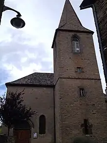 L'église romane est construite dans la première moitié du XIIIe siècle[2] et modifiée au XVIe siècle par l'ajout de deux chapelles latérales. La nef et le clocher sont d'origine moderne[1].