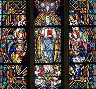 - Les vitraux datent la fin du XIXe siècle, ils ont été réalisés par les ateliers de Franz Xaver Zettler à Munich. Dans le chœur, ils mettent en scène les étapes de la vie de la Vierge Marie. Ils remplacent des verrières de la fin du XIIIe siècle dont quelques éléments sont encore en place. Une partie des vitraux d'origine a été identifiée dans la chapelle du château de Kreuzenstein en Autriche où ils ont été insérés en 1902[28],[29].