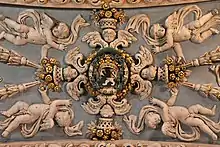 Les armes — "coupé de sable et d'argent, au lion de l'un en l'autre" — de Mgr Hercule Berzet/Berzetti ont été peintes sur le plafond (photographie ci-contre)[3].