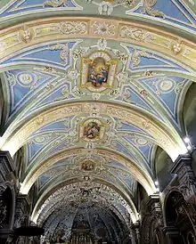 La nef présente un plan voûté d'arêtes[3],[4], « avec doubleau séparatif et cartouche sommital à décor »