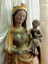 - La statue de la Vierge à l'Enfant est en pierre polychrome, et partiellement dorée. Elle mesure 160 cm de hauteur, et date du XIVe siècle. Son classement est intervenu en novembre 1908[16].