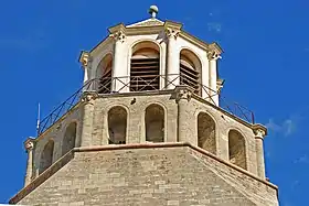 Ce deuxième registre comporte un octogone percé sur chaque pan d'une baie ajourée pourvue d'abat-sons. Ici aussi, les angles sont marqués par des colonnes, surmontées cette fois de chapiteaux aux motifs végétaux. Le clocher se termine par une forte corniche mouluré et un petit toit couvert d'ardoises.