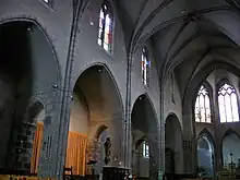 L'intérieur de l'église quant à lui permet de se rendre compte de la présence de nombreuses sculptures d'époque médiévales dont notamment une Vierge noire, statue reliquaire de la Vierge à l'Enfant et datée du XIIIe – XIVe siècle. La Vierge noire était portait en procession par une confrérie spéciale[41].