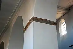 La transition avec le chœur est assurée par un grand arc triomphal[2] dont les piliers latéraux sont également mis en valeur par une imposte de pierre.