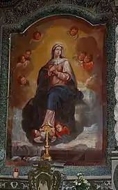 L'ensemble autel-tabernacle-retable et le tableau qui représente l'Assomption sont du XVIIIe siècle[16]
