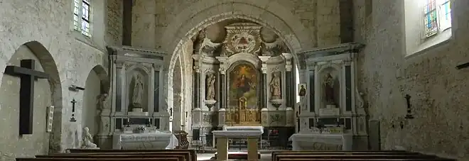 Néanmoins, il convient de s'intéresser à l'autel majestueux construit au XVIIIe siècle au fond du chœur. Son retable est remarquable. Il comporte un mélange de classique et de baroque reflétant une réaction non-conformiste du XVIIIe siècle. La richesse et le luxe de ce retable sont une sorte de réaction au dépouillement des édifices protestants. Le tableau central du triptyque est une œuvre de Jean Baptiste Thonnesse, peintre né à Dijon le 30 avril 1755 et installé à Angers, place du Pilori, jusqu'à la date de sa mort, le 26 octobre 1830.
