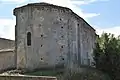 La partie orientale de l'église, la moins endommagée, a été séparée de la partie en ruine par un mur de blocage ; on a rebâti l'angle sud-ouest de l'avant chœur ou faux transept. L'abside se termine à l'Est par un contrefort percé d'une fenêtre; elle est demi-circulaire à l’intérieur, demi-octogonale à l'extérieur. La voûte est en cul-de-four; elle s'appuie sur une corniche au-dessus de laquelle règne une arcature de sept arcs en plein cintre retombant sur des colonnes à demi-dégagées. Les chapiteaux sont historiés.