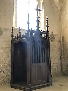 - L'impressionnant confessionnal néo-gothique provient de l'ancienne chartreuse de Bourgfontaine. Il intègre l'église lorsque le mobilier se trouve saisi à la chartreuse, lors de la Révolution française.