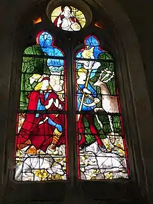 L'église possède quatorze verrières classées allant du XIIIe au XVIe siècle[2]. Sur le bas-côté nord nous pouvons observer la plus ancienne d'entre elles. Celle-ci représentent saint Denis et saint Waast en deux panneaux du début XIIIe siècle. Au sommet nous pouvons y observer le blason de la ville (la plus ancienne représentation connue). Près de l'autel de Sacré-cœur, c'est la légende de saint Hubert qui est représentée.