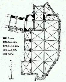 Vestiges du cloître roman, mur nord de l'église et clocher