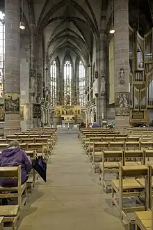- des restes du premier maître-autel autour de 1400 : les panneaux peints sont de nos jours au musée germanique de Nuremberg et au musée Städel de Francfort-sur-le-Main, les figurines sont entre autres à la galerie nationale de Prague ;