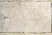 Ces gravures datent du XIIIe ou XIVe siècle. Parmi ces graffiti se trouvent plusieurs cadrans canoniaux et la gravure d'un cavalier. Les autres signes semblent dénués de sens.