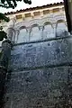 Deux cordons à ornementation de petits triangles opposés font le tour de l'abside. L'un court à la hauteur des tailloirs des chapiteaux, l'autre souligne la base des fenêtres.
