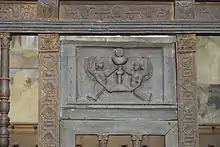 - Ce ne sont en réalité pas des soleils, mais des rosaces ou patères à ombilic, qui entrent dans la composition d'un entablement dorique.