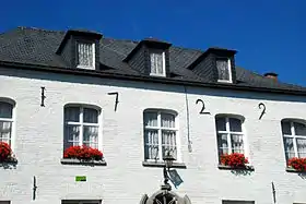 De l'autre côté de la rue, face à la tour de l'église, se dresse la cure qui occupe une maison à double corps datée de 1729 par les ancres de façade[2].