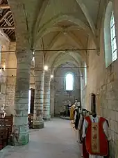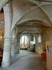 - Le croisillon nord et l'absidiole nord, toujours du même style, sont un peu plus récents et ont été terminées vers 1190 / 1200. Des fenêtres bouchées dans la partie droite du chœur montrent que l'absidiole et la chapelle sud n'étaient pas prévues initialement.