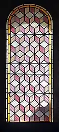 Les trois autres baies de l'église sont fermées par des vitraux identiques a décor géométrique, ainsi que l’oculus dans le bras sud du transept.