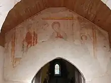 L'église conserve des peintures murales[2] des XIVe et XVIe siècles, notamment une Annonciation au-dessus de la porte d'entrée, protégée par un porche[3].