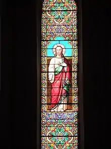 Signés du Lyonnais Dufêtre, les vitraux représentent des portraits en pied de saints, choisis selon les prénoms des donateurs. Les fidèles, les visiteurs peuvent reconnaitre :
