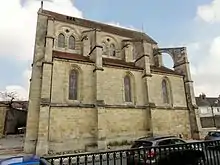 La nef, qui était courte car butant contre le mur du manoir à l'ouest, et nettement plus basse que le chœur à l'instar du transept, est abandonnée. Subsistent son mur septentrional en dessous des fenêtres (il n'y avait pas de bas-côté au nord), et une demi-colonne avec un beau chapiteau du début du XIIIe siècle, adossée à l'ancien manoir de l'abbaye Saint-Denis : elle correspond à l'extrémité sud-ouest de la nef. Son emprise est désormais occupé par le parvis de l'église[3]. Jusqu'au début du XXe siècle, le mur occidental du bas-côté sud de la nef était encore debout, comportant un portail roman tardif du milieu ou de la seconde moitié du XIIe siècle. Sa triple archivolte était décorée de tores et de bâtons brisés, et reposait sur deux groupes de trois colonnettes à chapiteaux. Cet intéressant vestige n'a été démoli que pour économiser les quelques centaines de francs qu'aurait coûté sa consolidation. Quelques fragments ont été déposés au musée Tavet-Delacour de Pontoise[5]. En 1926, le chœur est inscrit au titre des monuments historiques[2] : le transept est donc exclu de l'inscription, bien qu'aussi authentique que le chœur dans sa partie nord.