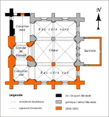 Début de la construction 2e / 3e quart XIIe siècle (croisillon nord) ; vers 1220 (chœur)