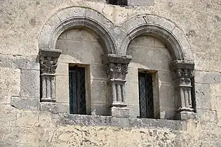 Les douze chapiteaux sont sculptés de décors figuratifs, animaux et végétaux[2].