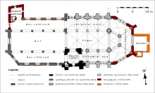 | Autres campagnes de travaux | fin XIe siècle (ancien bas-côté sud) ; 3e quart XIIe siècle (nef) ; 1578-1585 (reconstruction déambulatoire, chapelle baptismale) | ||