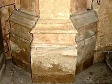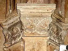 Base du clocher, chapiteaux dans l'angle sud-est.