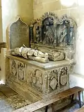 Sarcophage, armoiries de Jeanne de Ver et de Jean Chenu.