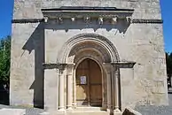 Le portail s'ouvre dans un avant-corps couronné par une corniche à modillons. Il compte deux voussures romanes et une voussure interne, légèrement asymétrique, qui date du XIVe siècle. Le style des archivoltes et les sujets figurés se placent dans le droit fil des sculptures de l'abbaye de La Sauve-Majeure. La façade occidentale est dotée d’un clocher-mur à deux larges baies ogivales.