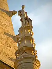 - Le groupe sculpté représentant saint Roch de Montpellier avec l'ange qui lui apporta son pain et l'ange qui soignait ses plaies infligées par la peste, est en pierre calcaire. C'est une œuvre de qualité qui date de la même époque que le Christ, et a été offerte par les habitants pour montrer leur gratitude pour que leur village ait été préservé de la peste[9]. La sculpture n'est pas encore classée à ce jour.