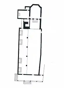 Sur le côté gauche de l'église, également décoré de bandes lombardes et rythmé de lésènes en arête-de-poisson, on peut encore voir les traces de la grande croix rouge peinte pendant la Seconde Guerre mondiale, pour signaler aux bombardiers la présence d'un hôpital[5]. Enfin sur le côté droit de l'église, plusieurs pavillons ont été aménagés pour l'hôpital, pour la plupart au XIXe siècle.