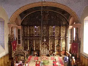À l'intérieur, l'iconostase a été sculptée par un artiste inconnu dans un style mêlant le rococo et le classicisme ; les icônes sont attribuées à des disciples de Pavel Đurković[1], probablement Georgije et Dimitrije Popović[2]. En 1811, Georgije Popović a peint l'icône du trône de la Mère de Dieu, connue sous le nom de « La Mère de Dieu arabe » (en serbe : Bogorodica Arapska)[1],[2],[3].