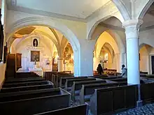 Chapelle baptismale, vue vers l'est dans la base du clocher.