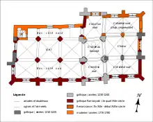| Autres campagnes de travaux | fin XVIe siècle / début XVIIe siècle (voûtes de la nef, du croisillon nord et du collatéral sud du chœur ; collatéral nord du chœur en entier ; piliers centraux du chœur) ; années 1770 (bas-côté nord de la nef) |