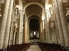 À l’origine, la nef était couverte d’une charpente. Puis on décida de la voûter, et, pour réduire la largeur de la portée, on jeta deux rangées de supports, qui déterminèrent les deux couloirs latéraux qui existent avant les autres nefs latérales proprement dites. Lorsqu’on décida, dans la seconde moitié du XIXe siècle de reconstruire la nef détruite à la Révolution, on pensa que la voûte avait consisté en une file de coupoles. D’après le témoignage d’un voyageur, Claude Perrault, l’architecte de la colonnade du Louvre, en 1669, on sait aujourd’hui que la nef était à l’origine couverte en berceau avec doubleaux.