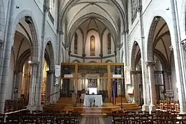 La chapelle absidiale gauche est consacrée à la Vierge, avec une mosaïque d'A. Girard (1911) et une statue de la Vierge à l'Enfant, intitulée « Notre-Dame de toutes les Nations », par Dominique Kaeppelin[1]. La chapelle absidiale droite est consacrée au Saint-Sacrement, avec une statue du Sacré-Cœur de Jésus.