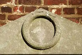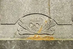 Trois d'entre elles sont entièrement semblables. Elles prennent chacune l'allure d'un mausolée porté par deux consoles et orné d'un cartouche gravé d'une épitaphe devenue illisible entourée de faisceaux de licteur. Sous le cartouche est gravée une tête de mort. Chaque mausolée est sommé d'acrotères encadrant un fronton triangulaire sur lequel est gravé le motif du serpent qui se mord la queue, l'ouroboros, symbole du cycle de la vie et de la mort.