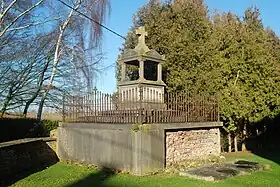 Le mausolée situé derrière le chevet de l'église est constitué d'un parallélépipède en pierre bleue, d'environ 2 mètres de haut, couronné d'une corniche moulurée, de quatre frontons triangulaires alternant avec quatre acrotères gravés d'ornements et d'un gros crucifix en pierre. Chacune de ses faces est ornée d'un cartouche mouluré à crossettes.