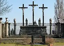 Il comprend un autel surmonté de trois croix, qui correspond à la 12e station du chemin de croix, entouré d'anges en adoration et de cippes. Au-dessous se trouve une chapelle souterraine dans laquelle un caveau funéraire et un gisant de Jésus-Christ représentent la 14e station. Cette chambre funéraire était initialement une chapelle, qui fut finalement transformée.