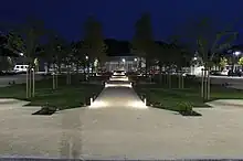 Quarante-deux places de parking sont créées sur le pourtour du square, dont trois destinées aux personnes à mobilité réduite. Le trottoir devant la sortie de l'école des Poulies est sécurisé[36]. Les travaux de voirie sont achevés fin mars 2015. La pose des plaques en lave émaillée du mémorial ainsi que la mise en route de la fontaine érigée à l'emplacement du maître autel sont réalisés début juin 2015[37].
