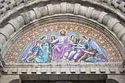- Le tympan en terre cuite émaillée de l'église évoque le Jugement dernier. On peut voir sur ce tympan la signature de Gaston Virebent et la date de 1862, marquant probablement la fin des travaux d'agrandissement[3].