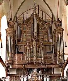 L'orgue du mur occidental date de l'époque gothique, mais est maintes fois agrandi depuis l'époque baroque. Le petit orgue, plaqué sur le mur Nord, en "Nid d'Hirondelle", date de 1467 et est reconstruit par Friedrich Stellwagen en 1636-1637.