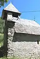 Le clocher-mur a été transformé en clocheton et couvert d'un toit en pavillon.