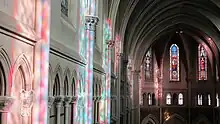 Sur le bas-côté droit, sont disposés cinq vitraux réalisés en 2005 par Kim En Joong, artiste dominicain de nationalité coréenne.