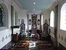 L'intérieur mélangeant les styles baroque et néo-classique Louis XVI.