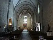 L'église comprend trois chapelles. Deux sont placées en vis-à-vis et forment un faux transept. Une autre, la chapelle Saint-Joseph, s'ouvre sur le mur nord plus près du mur occidental et doit être plus ancienne, romane, antérieure à l'église et à la construction de la bastide. Ces chapelles sont éclairées par une fenêtre.