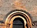 L'archivolte du portail sud du transept est ornée d'un rinceau et le tore de l'arc est traité en torsade. Les deux chapiteaux corinthiens sont décorés de feuillage. Deux atlantes soutiennent les tailloirs. À côté, des scènes pourraient être des représentations d'épisodes de l'histoire de Samson.