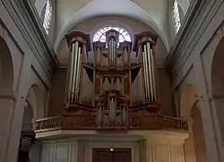 Les grandes orgues du XVIIe siècle, construites en 1746-1747 par le facteur suisse Samson Scherrer, ont été remplacées en 1980 par de nouvelles orgues réalisées par Bartoloméo Formentelli et comprenant 61 jeux et 4 600 tuyaux. Il ne subsiste que la tribune sur laquelle est venu prendre place, en 1805, l'orgue de l'abbatiale de Saint-Antoine en Viennois qu'une décision d'État a attribué à la paroisse citadine.