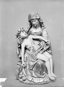 La statue dite de la « Vierge noire de Venlo » est une Pietà en calcaire pas vraiment noir qui date de 1450 environ. Selon la légende, elle se trouvait sur un bateau transportant du charbon de Liège à Venlo et qui s'est échoué sur les bords de la Meuse. Le capitaine, qui ne peut remettre à flot son navire, découvre dans la cale une Madone, qu'il veut d'abord jeter à la mer, mais sa femme le convainc de l’apporter plutôt aux chanoines réguliers de la Sainte-Croix de Venlo. Quand il retourne à son navire, il retrouve la figure à la même place. Ceci se répète plusieurs fois jusqu'à ce que le capitaine réalise qu'il devait transporter la figure dans une procession solennelle jusqu'à leur Kreuzherrenkirche. C'est seulement alors qu'il a pu continuer son voyage sans entrave. Depuis 1814, la sculpture est dans l'église Saint-Martin.